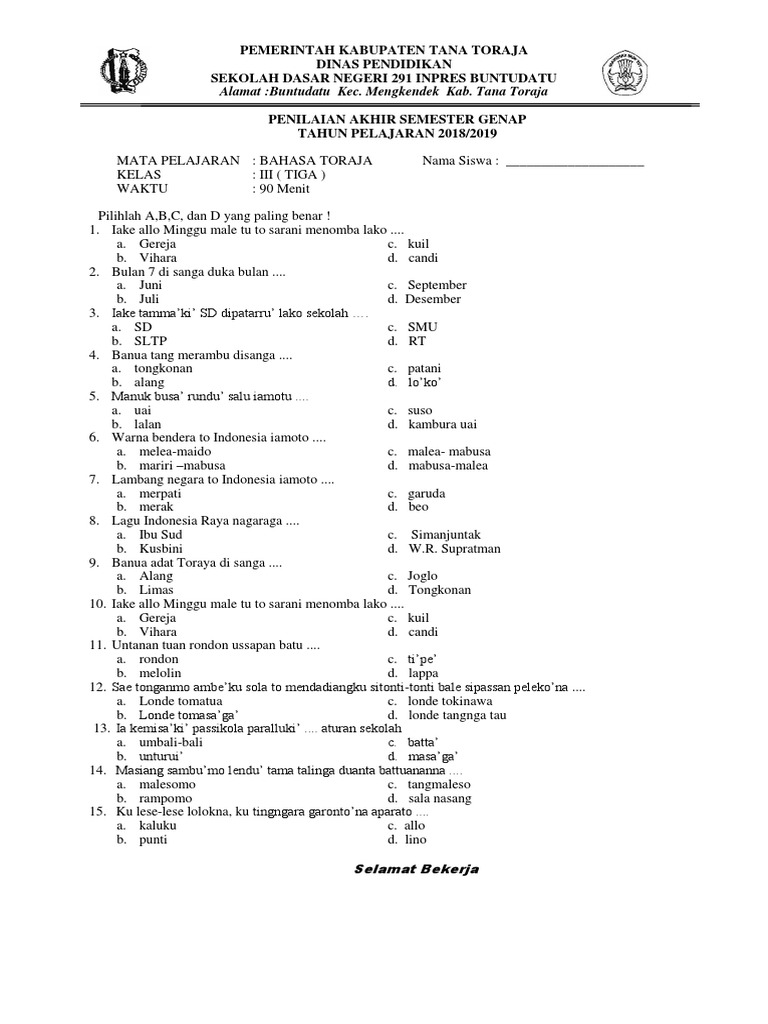 Soal Bahasa Daerah : Soal Bahasa Daerah Bugis Kelas 2 Sd / Maybe you would like to learn more about one of these?. Check spelling or type a new query. We did not find results for: Maybe you would like to learn more about one of these?